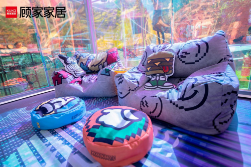 除此之外,顾家家居还推出了诸多时尚创意好物。亚克力小茶几、床边毯、懒人沙发、单人坐垫蒲团、玩具靠垫等,是顾家家居联合知名潮牌INXX中国与Urban Art 艺术家 GRAFFLEX,合作推出的限量家居系列,皆采用个性黑色的“粗体”字符为设计灵感,用艳丽多彩的符号和视觉图案,传递了当代青年的“宅”家活力。