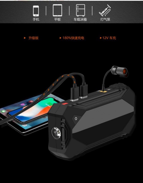 汽车应急启动:启动性能优越,拥有18000mAh大容量,能提供300A-1200A的启动电流,即使是在严寒酷暑(-20℃~60℃)恶劣的环境下,仍可轻松启动。