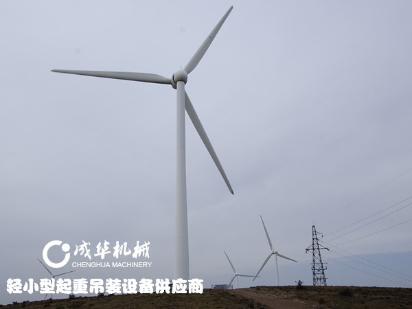 风力发电机体积非常大,无法进行整机运输作业,到达安装地点后,需要将配件进行组装,将主轴固定好,大型的叶片、中轴等,使用大型起重机械进行吊装,小型的锁扣、轴承、支撑杆等配件,使用手拉葫芦吊装。