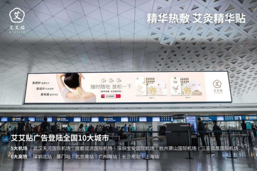 艾艾贴艾灸精华贴此次投放十大热门城市机场和高铁广告,是其艾灸精华贴宣传的开始,也是艾艾贴品牌冲刺艾制品行业领导地位的又一大作。