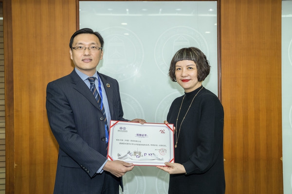 清华大学公共管理学院副院长、清华大学全球可持续发展研究院执行院长朱旭峰教授(左)向王珏女士(右)授予捐赠证书