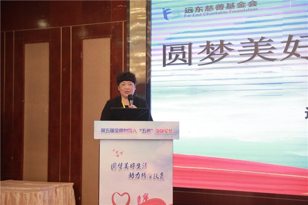 她表示,2007年5月17日,远东控股集团出资8296万元成立了国内首家最大规模的定向资助身障人就业培训的非公募性慈善基金会——远东慈善基金会。8296万元,是2007年全国身障人的数字,意在给每位身障人一块钱,帮助自强不息、怀揣梦想的人们推开创业之门、创新之门、创优之门、创富之门和创福之门。