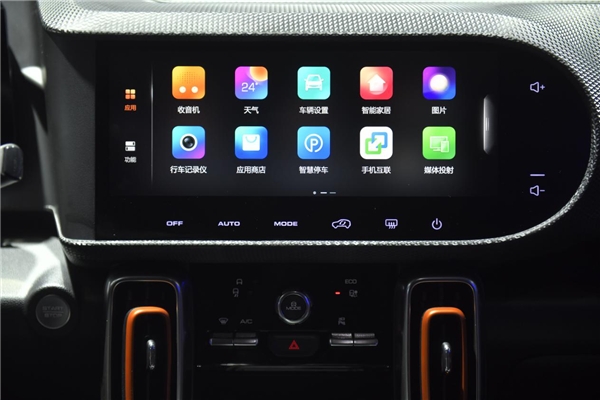 不仅如此,哈弗大狗还搭载了360度影像,堪称新手福音。众所周知,在北京行车,会遇到各种插队并车的现象,一条双车道的路能被硬生生地开出三车道的感觉。对于新手而言,可能对车宽的概念没有那么清晰,不敢贸然上前,只能被卡在原地停滞不前。这时候大家可以打开360影像按钮,全车周边情况就可一目了然,而且还有车距警告,在两车之间低于100毫米后,屏幕就会进行报警显示,让你在堵车中也能游刃有余。