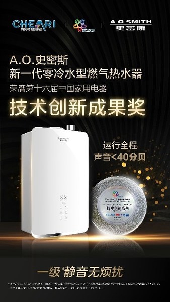 日前,“第十六届中国家电电器创新成果发布盛典”在京圆满落幕。本次大会的主题为“创造新生,联动未来”,拥有146年历史的A.O.史密斯再次成为全场的焦点,除了获颁“最具创新力家电品牌”这一重量级荣誉之外,旗下的零冷水燃气热水器“一级静音技术”与“橱下冷热即饮净水机”,还分别荣获“年度技术创新成果”与“年度产品创新成果”大奖,赢得了消费市场与行业口碑的双重肯定。