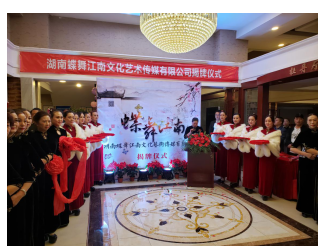 2020年11月8日在湖南怀化天宏大酒楼隆重召开了湖南蝶舞江南文化艺术传媒有限公司揭牌仪式,到场嘉宾及领导共同见证了这个历史性的一刻。湖南蝶舞江南文化艺术传媒有限公司是一家集主持、形体、旗袍、体育、舞蹈、瑜伽培训、演出文化交流等综合性公司。