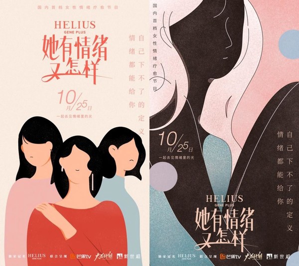 在这样的背景下,新锐护肤品牌HELIUS赫丽尔斯因势利导,以女性情绪为社会背景讨论,联合以独立女性为主要受众的中国头部内容品牌新世相、芒果TV及芒果TV大芒计划,多方平台倾力呈现国内首档女性情绪疗愈系列综艺 -- 《她有情绪又怎样》。打破社会对于“情绪化”的刻板印象,深入探讨当代女性面临的情绪困境,持续输出品牌对于“情绪管理”积极、正向的观点和理解,并传递品牌对于女性内心世界的呵护与关爱。