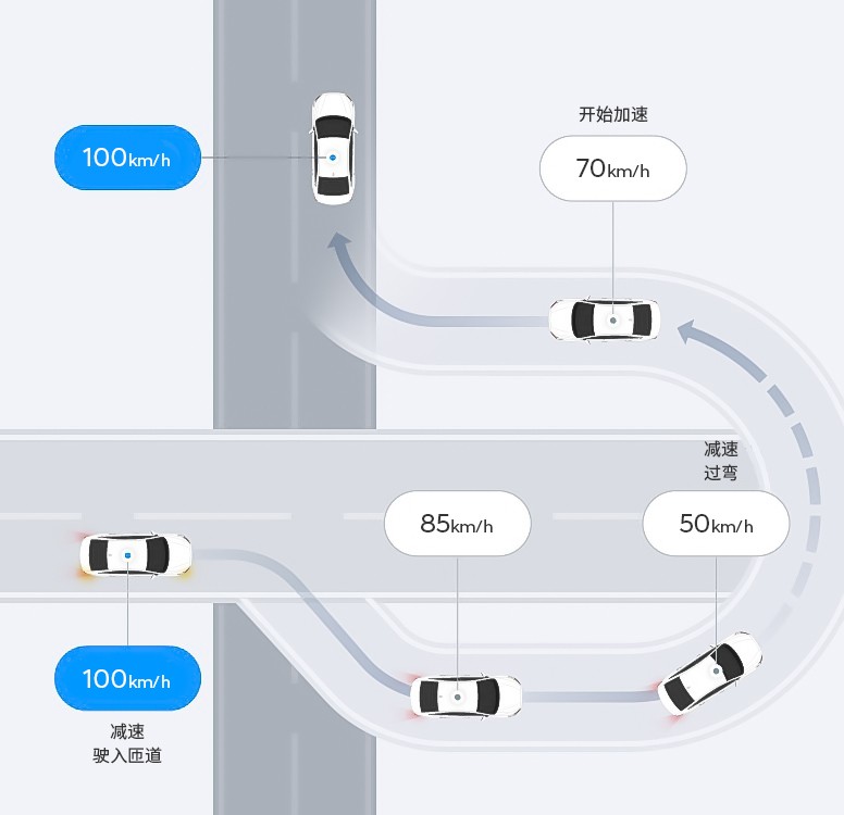 众所周知,现有的SCC只能通过识别周边的车辆进行巡航控制,而第十代索纳塔所搭载的NSCC除了更好地优化了自动驾驶功能之外,还能够结合导航系统提供的道路信息进行更准确的控制。NSCC基于导航智能巡航控制系统,可以在定速巡航中,进入高速公路或机动车专用车道,会基于导航自动识别区间测速摄像头、限速标志并调整车速,在发现弯道时自动确认曲率并以最佳速度通过。