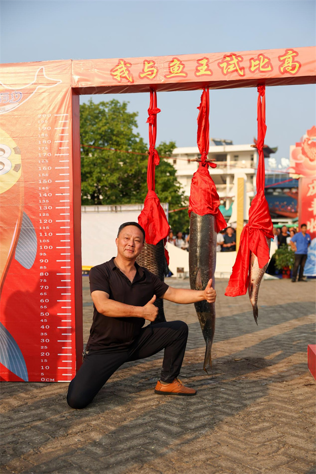 享用鱼宴的同时,舞台上丹江特色节目陆续开演,让广大游客体验到了丹江人的热情。活动现场还安排了“我鱼王比高低”的小游戏,游客纷纷和鱼王留影,记录下这美好时刻。