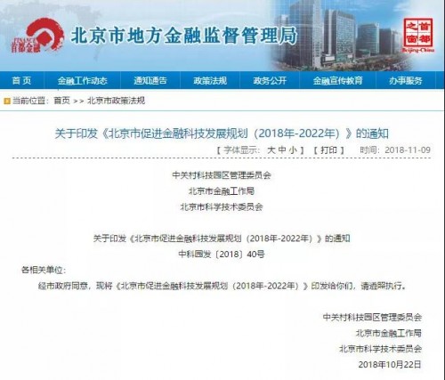 近日,中关村管委会、北京市金融工作局和北京市科学技术委员会发布消息,经市政府同意,联合发布《北京市促进金融科技发展规划(2018年-2022年)》(以下简称《金融科技规划》),鼓励金融科技底层技术的创新和应用。