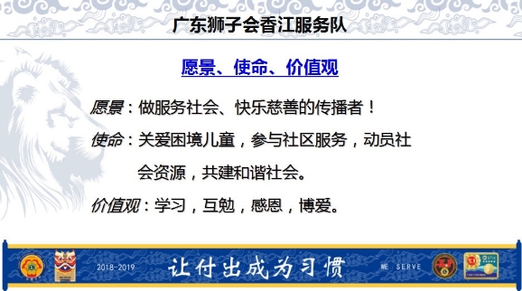 广东狮子会香江服务队1819年度队长胡春龙狮兄就职演说和感言