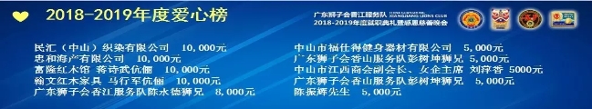 广东中山狮子会香江服务队慈善爱心企业捐款名单