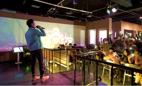 在这里,时常会有不同主题的赛歌会,宛如KTV的公共唱台。主题相关的歌曲,你可以唱,他可以唱,还可以发起打分和投票,选出当期活动的“民间歌王”,又有店家赠送的心动大礼可拿。
