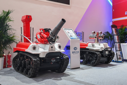 除展示的两款机器人外,迪马工业还拥有灭火机器人、全地形轮式消防机器人、河湖救援水下机器人、远征者水下机器人等多款产品,针对各种应用环境,满足不同抢险救援需求。