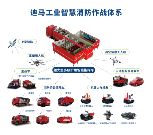 “近年来,信息技术飞速发展,作为智慧消防践行者,迪马工业采用“感、传、知、用”等物联网技术手段,不断升级自身产品与应用。”迪马股份副总裁、迪马工业总经理刘琦谈到,“早在前期,迪马已开发出‘前线应急指挥系统’,可实现综合调度、电子地图、快速建模、作战部署、应急通信等功能,有效解决设备与设备之间的通信问题,大数据加持下为现场提供更为丰富的指挥功能;‘应急安全管理系统‘,通过AI摄像机、传感器、基础通信采集设施等智能硬件产品实时采集数据,从数据中获取关联性形成情景模型,实现消防、安防、环境、人、车、物一体化智能管理,让指挥调度变得更加得心应手;‘专用车智慧互联系统‘,利用网络通信技术、自动控制技术等高新技术将车内各种传感设备有效集成,为用户提供车辆远程控制、车辆故障诊断、车辆设备维保管理、环境监测、车队无障碍联通等解决方案。三大系统与我们产品强强结合,真正实现智能互联战斗集群一站式掌控,这也是我们迪马在智能消防领域一道新的突破,我们坚信,随着数字化、AI、智造品质的不断迭代,群众安心幸福的生活将更有‘质感’。“