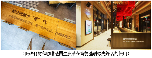 全新亮相的两家肯德基创绿先锋店分别坐落于杭州高教园区和北京首钢园区。这两家实体“小绿店”在整体设计、设备研发选择和材料应用上遵循了减量(Reuse)、回用(Reuse)、循环(Recycle)、替代(Replace)的4R原则,有效实现餐厅运营减少碳排放的同时,也为消费者打造了一个全方位体验、了解和参与减碳环保的绿色餐厅空间。