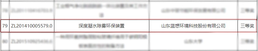 值得关注的是,山东省专利奖除对专利的授权文本质量要求高之外,更着重强调了专利实施的经济、社会效益。经过严格的审核评审,山东蓝想环境科技股份有限公司的发明专利《深度凝水除雾环保装置》,最终以较高的技术水平进入获奖项目名单。