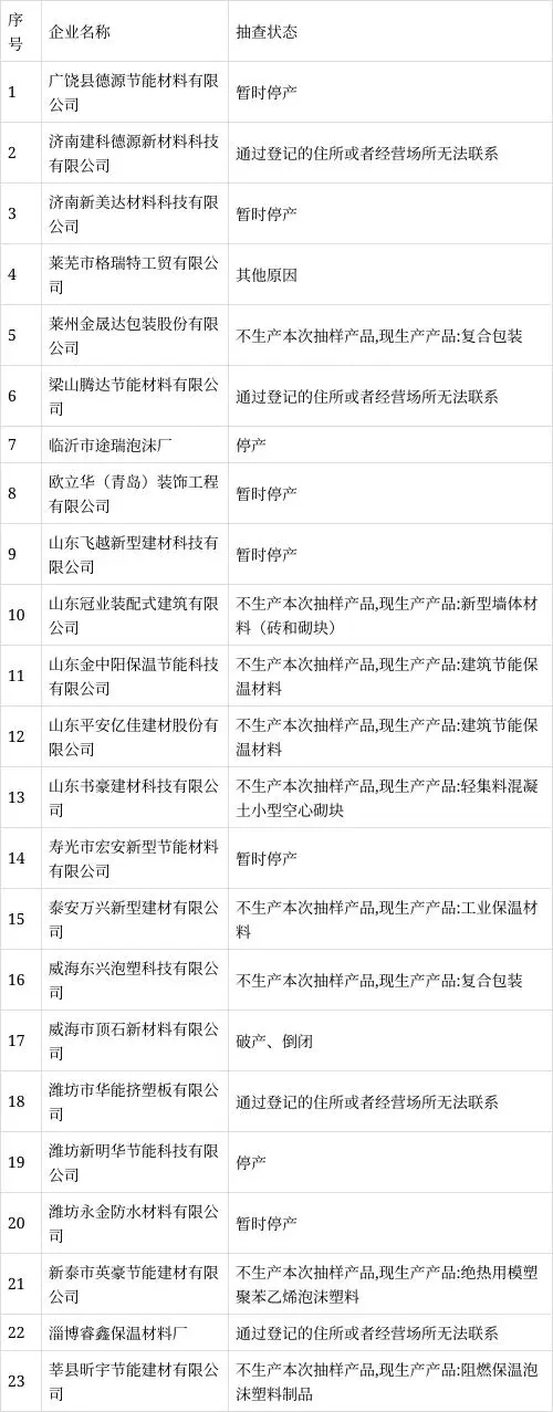 山东省市场监管局抽查建筑节能保温材料产品94批次 1批次不合格