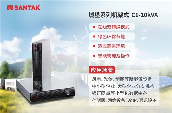 针对储能行业多场景应用特点,山特在此次储能展上重点展示了两款机架式 UPS,城堡系列 C1-10kVA Rack、新能源储能设备专用 ES 系列 UPS。这两款产品因为体积小而紧凑,拥有友好的环境适用性、标准的正弦波输出、高可靠性和绿色节能等特点,已在各类储能系统中取得广泛应用。