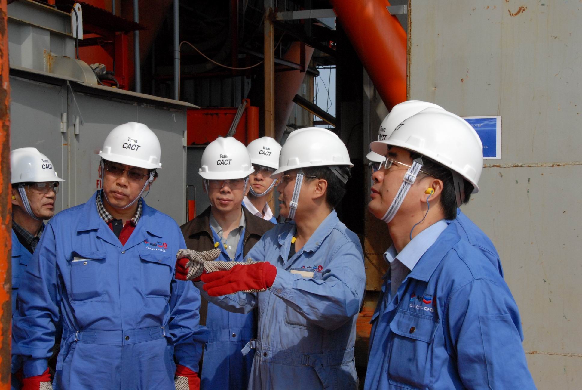 会议期间,有关领导和专家在深圳分公司领导与工作人员陪同下,从深圳乘工作专机,飞抵惠州油田群参观考察。惠州油田是我国南海东部海域最大的海洋采油作业区,包括惠州32-2油田、惠州32-3油田、惠州21-1油气田、惠州25-3油田、惠州25-4油田等多个油田和天然气田。飞机先后到达惠州32-2和惠州32-3平台。现场工作人员向各位专家和领导详细介绍了生产工艺流程、作业情况和节能工作的开展情况,引领参观了作业现场的用能设备、污水处理设备等。经过现场考察,专家和领导们对深圳分公司节能工作的开展与所面临的困难有了更加深入与直观的了解,取得了宝贵的现场资料。