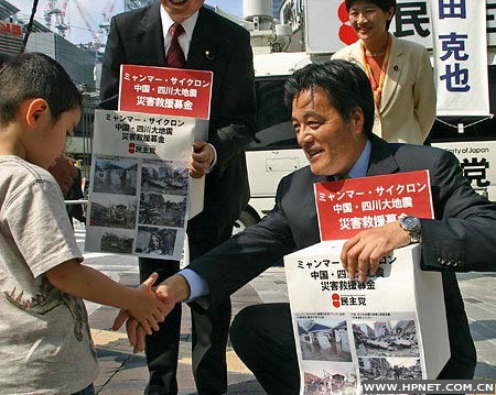 日本民主党议员在街头为四川地震灾区组织募捐活动