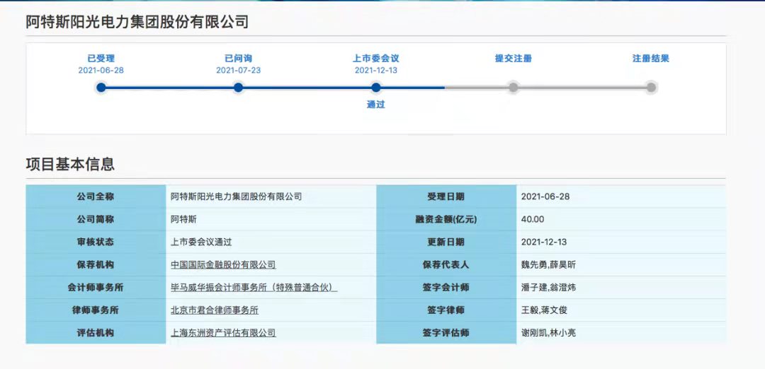 据了解,阿特斯于2020年7月宣布将其组件和系统解决方案业务整合,准备在上海证券交易所科创板上市。2021年6月,阿特斯向上交所递交了申报稿,在历时近半年后,阿特斯获证交会批准,成功过会。