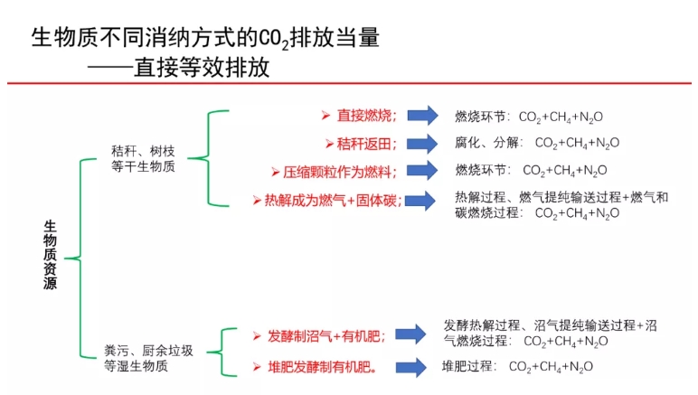 下沉到生物质发展方向来说,就是发展商品化生物质燃料,用来替代化石燃料,减少化石能源燃烧产生的直接碳排放。推广沼气集中供气工程,实现各类可发酵有机废弃物的消纳,尤其应在水稻秸秆资源丰富的地区,通过将稻草进行有组织的集中式发酵生产生物天然气,解决直接还田所带来的温室气体无组织排放问题,但应加大CH4的回收率,减少使用过程中的泄漏。
