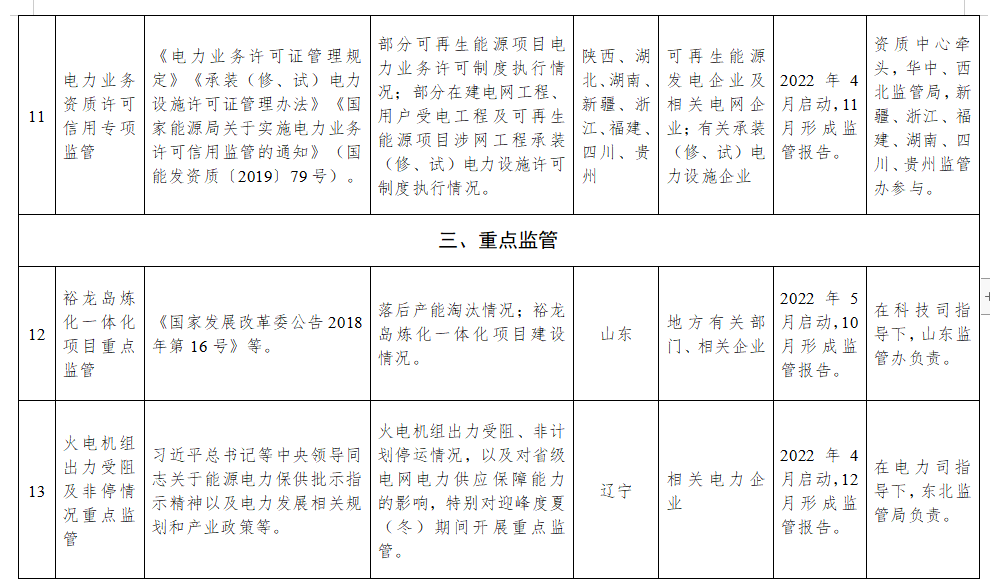 国家能源局印发2022年能源监管重点任务清单 涉大基地建设情况、新能源安全等16项内容