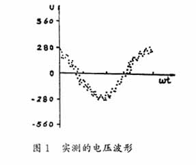 由于谐波的存在,电压波形发生畸变,使电压峰值增高,呈锯齿状尖顶波。图1所示为实侧的电压波形。