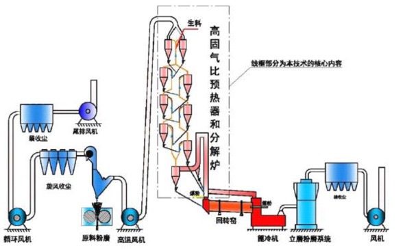图1 高固气比水泥煅烧技术工艺流程图
