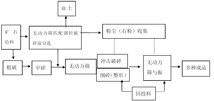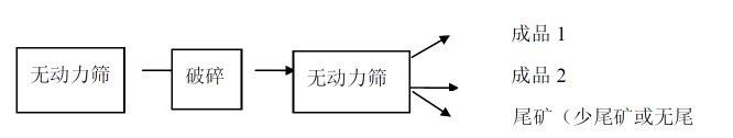 无动力防卡筛配套应用于较大粒径或粒径级差大粉料多的选矿工艺流程见图2。