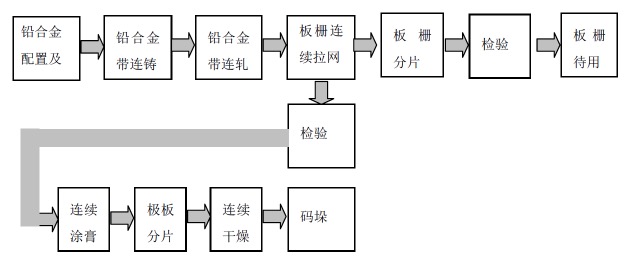 图1 铅蓄电池高效低能耗极板制造工艺流程图