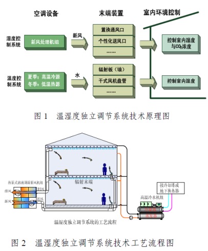 温湿度独立调节系统中温度控制系统的干式末端--毛细管辐射产品、湿度控制系统的溶液除湿技术、室内温度、湿度控制与调节技术、防结露技术。