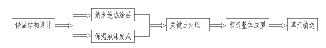 将应用与航空航天等领域的纳米级二氧化硅气凝胶绝热保温材料和玻璃纤维、泡沫保温材料以最佳的形式组成蒸汽输送管道的保温层结构,形成高保温性、高防水性、高稳定性和高保温节能性的的蒸汽输送管道,采用抽真空技术将保温管道保温腔中空气抽空,最大限度减少对流换热损失,在蒸汽输送环节降低热能损耗,同时优化疏水方式,减少疏水环节蒸汽热能损耗。将应用与航空航天等领域的纳米级二氧化硅气凝胶绝热保温材料和玻璃纤维、泡沫保温材料以最佳的形式组成蒸汽输送管道的保温层结构,形成高保温性、高防水性、高稳定性和高保温节能性的的蒸汽输送管道,采用抽真空技术将保温管道保温腔中空气抽空,最大限度减少对流换热损失,在蒸汽输送环节降低热能损耗,同时优化疏水方式,减少疏水环节蒸汽热能损耗。