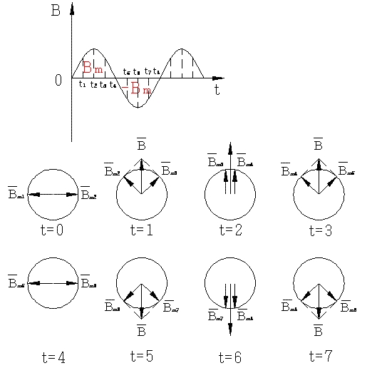 单相绕组电流建立的脉动磁场
