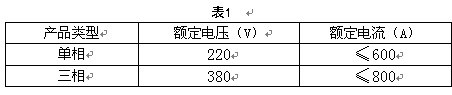 4.1 产品类型:按额定电压分为单相(AC220V)和三相(AC380V)两大类;按实际的使用电流又分为10A、20A、30A、40A、50A、80A、100A、150A、200A、250A、300A、350A、400A、500A、600A、800A。