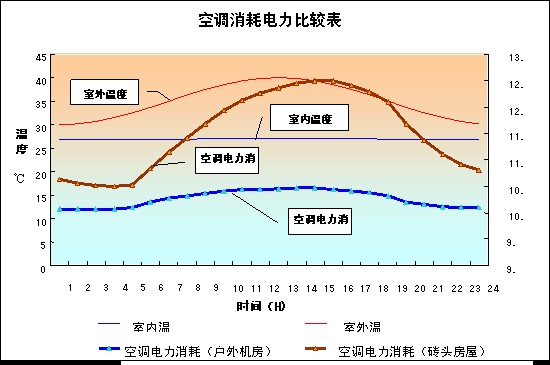 图四:户外机房和土建房空调消耗电力比较表